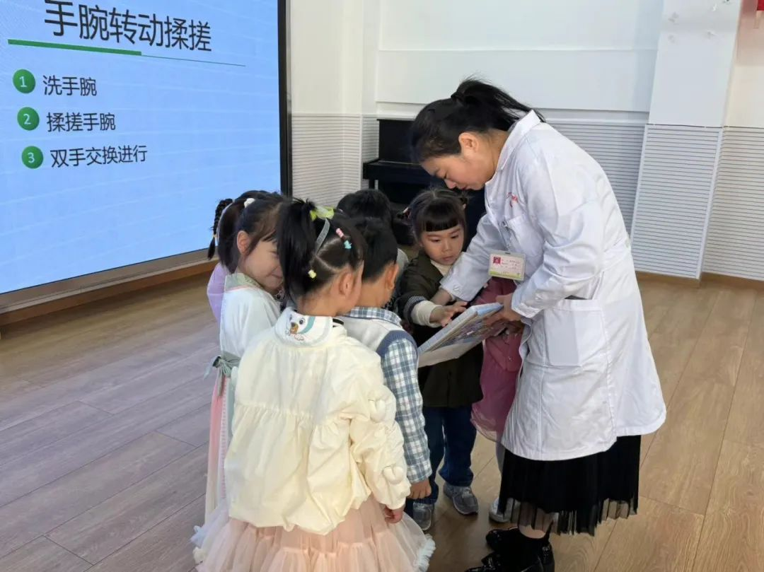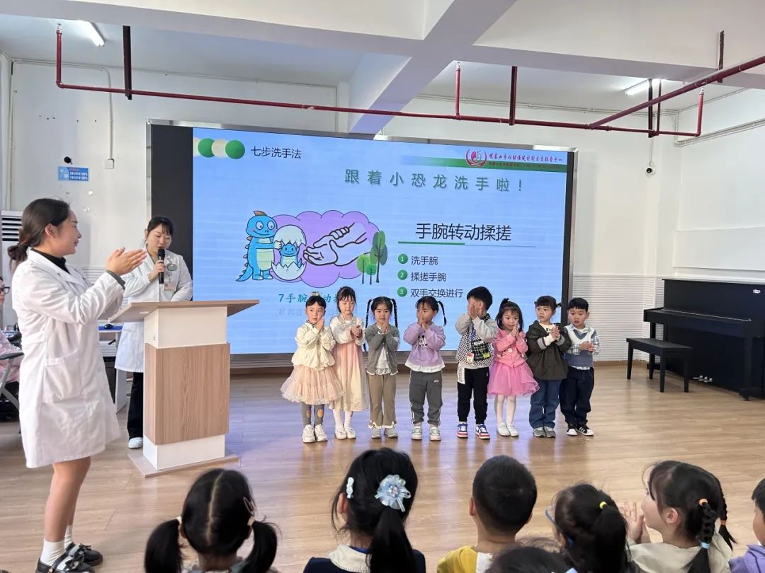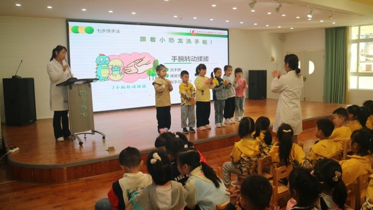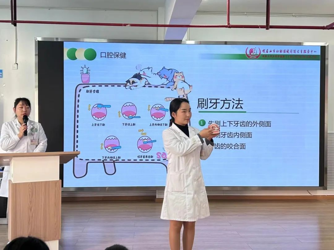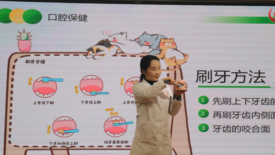 医生阿姨讲解了七步洗手法,还教我们正确的刷牙方法,最后分发了护牙宣传单。