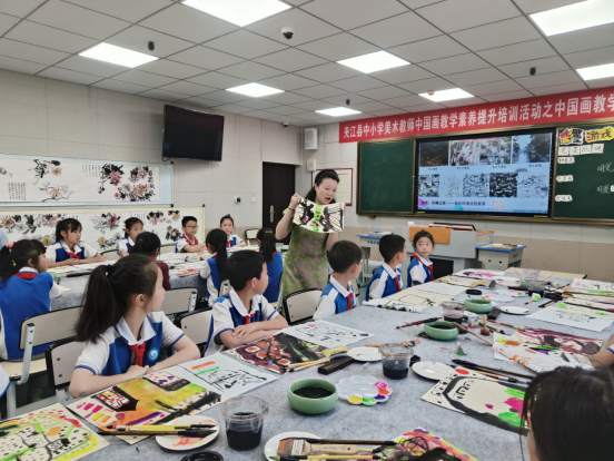 夹江县英才小学杜琴、峨眉博睿特小学石冬梅老师分别展示了五年级《花鸟画(一)菊韵》、三年级《彩墨游戏》。杜老师通过生动的讲解和示范,引导学生们深入了解了花鸟画的绘画技巧,感受了中国画的笔墨情趣和艺术魅力。石老师将游戏互动贯穿整个学习过程,通过音乐美术艺术融合的方式,激发了学生的学习热情,让他们在轻松愉快的氛围中领略中国画的材料美、笔墨美、意境美。