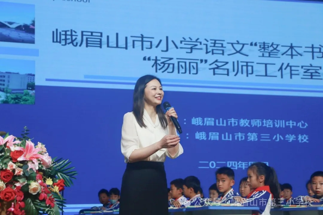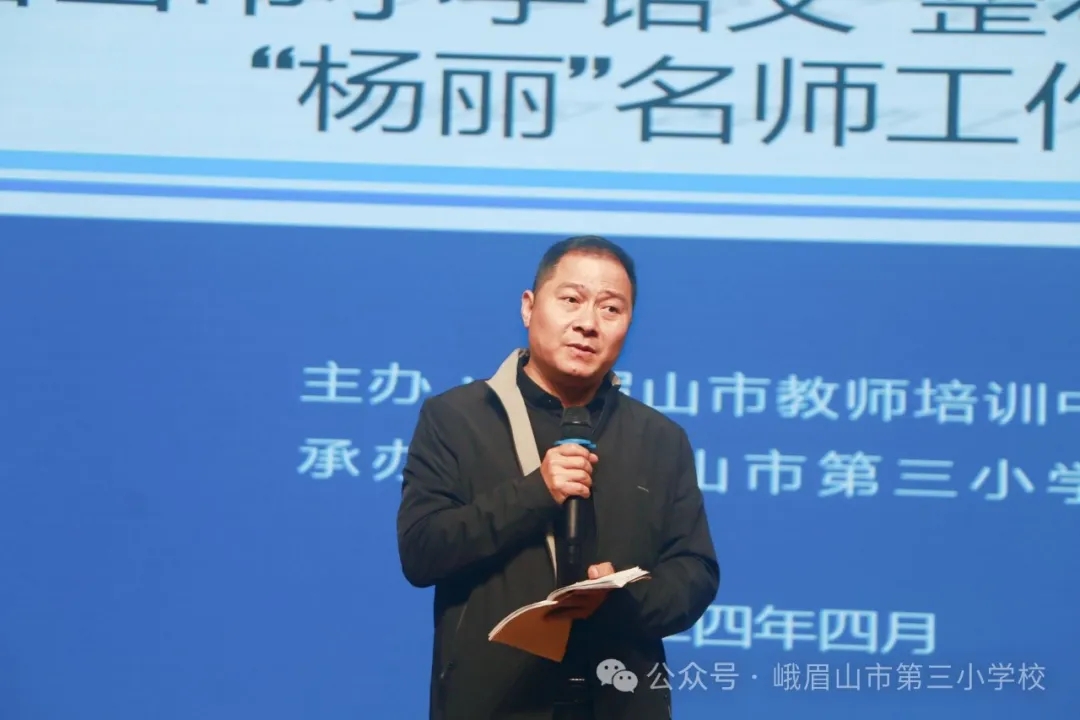 雨生百谷夏将至,深耕细研正当时。为践行新课程理念,推动整本书阅读教学的开展,促进学生阅读素养提升,4月19日,峨眉山市小学语文“整本书阅读教学专题”研训会暨“杨丽”名师工作室活动在峨眉三小星光剧场隆重举行。本次活动在工作室成员李智慧老师热情洋溢的主持中拉开帷幕。