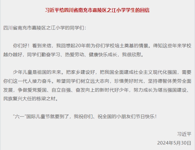 亲切的问候、殷殷的嘱托,在全体少先队员中引起热烈反响。