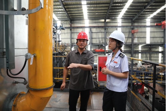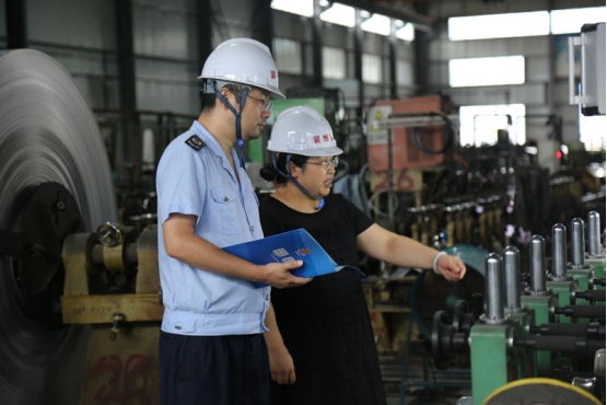 税务干部实地了解企业厂区生产设备(摄影:雷娟)