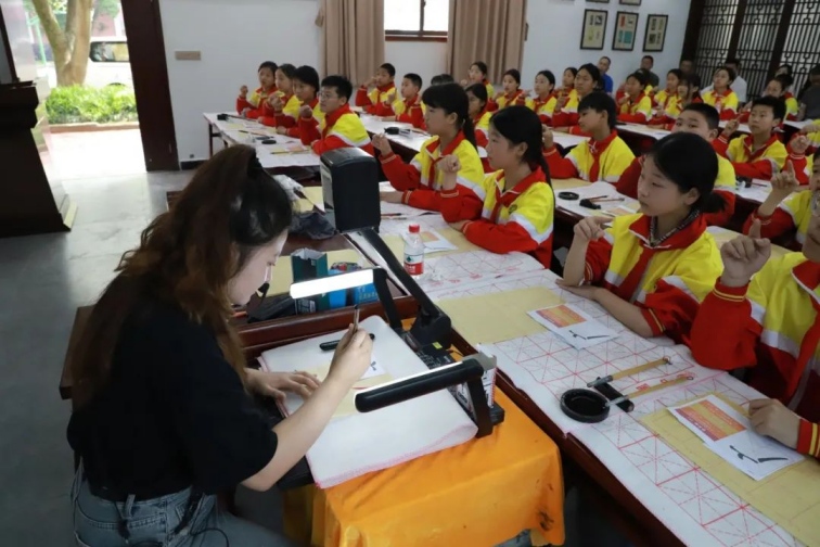第二天,大家来到涪陵城三校教育集团成员学校—-南沱镇中心校,学习其篆刻特色文化。观摩了廖菁老师带来趣味生动的《广字头》书法课程,参观了南沱镇中心校劳动教育基地。接着,涪陵城三校教育集团和峨眉实小管理团队及部分教师代表在南沱镇中心校召开了座谈会。会上,两校管理团队围绕校园文化、特色建设、课程管理、教学教研等方面进行了深入交流和沟通探讨,以谋求更好的发展思路。