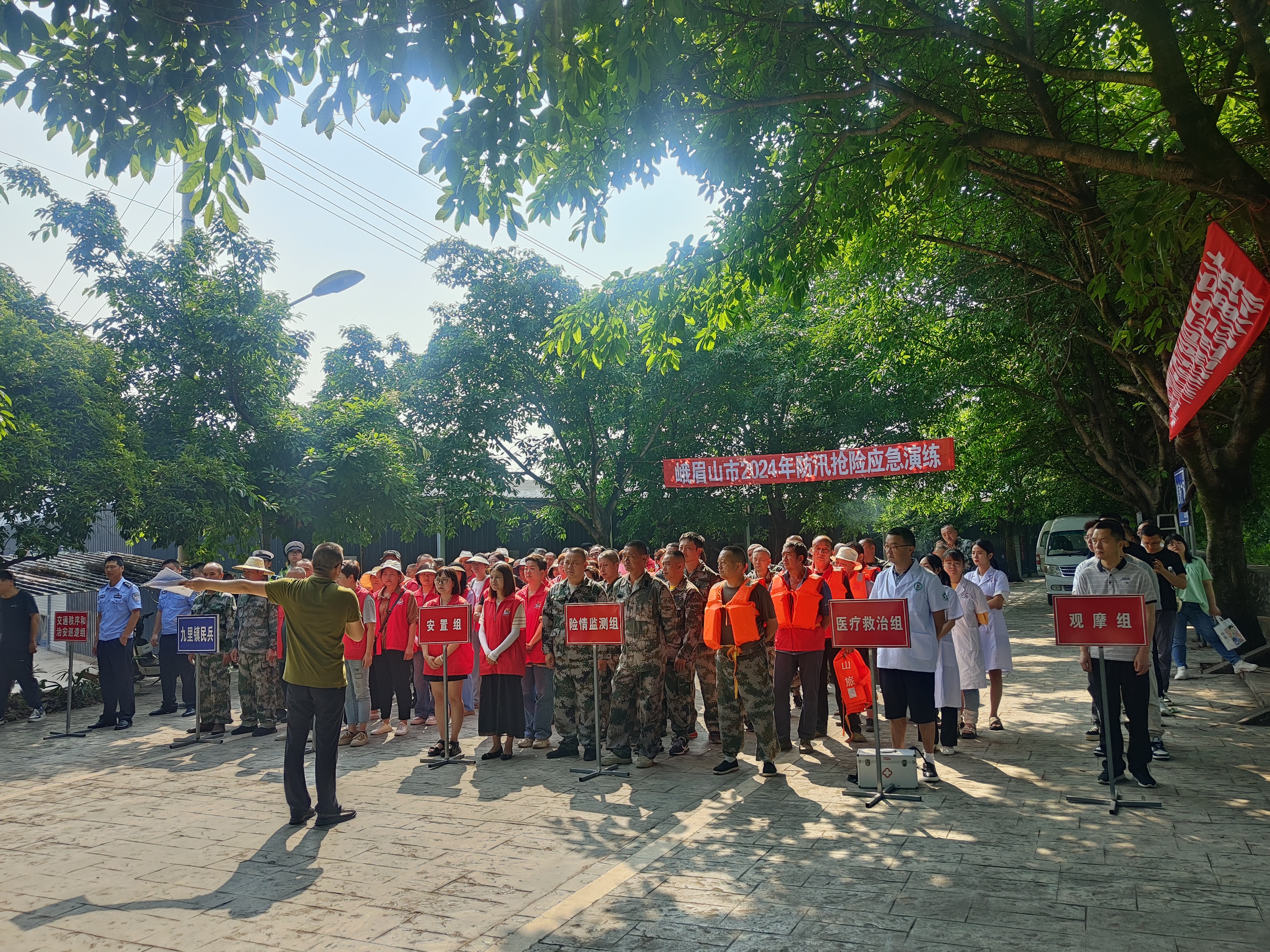5月22日,峨眉山市防汛抗旱指挥部在九里镇农贸市场开展2024年山洪灾害防御应急演练。市应急局、市水务局、市气象局、市公安局、市交警大队和九里镇等防汛成员单位工作人员以及群众约300人参加演练。