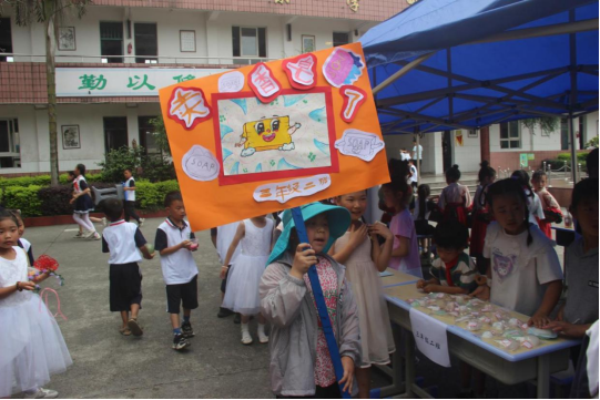 随后,全校师生齐聚操场,学校领导强调了交易规则后宣布开市,一声锣鼓“铛”,交易会正式拉开序幕,同学们纷纷涌向卖场。