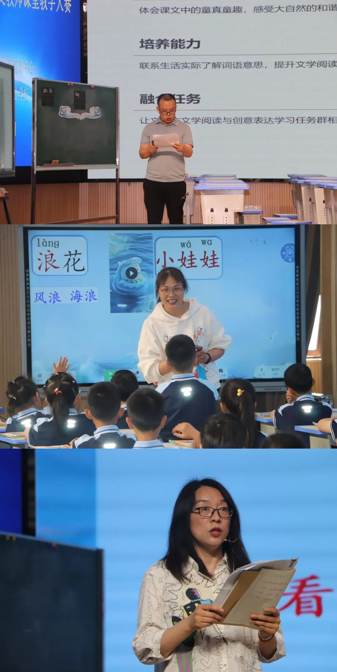 本次比赛活动的主题是“聚焦语文要素,践行大单元教学”,每个学校由3人组建参赛团队并分别承担三个展示任务:单元整体规划与解读、现场课展示、反思性说课,从而全面考查教师的专业素养与团队协作能力。近两天的比赛,9支参赛队伍依次亮相,他们以新课程标准为指引,以单元统整为思路,以语文要素为着眼点,将小学语文大单元教学理念从“巧构思——真践行——实反思”一一展示,为全市小语教师呈现了一场精彩的教学盛宴。