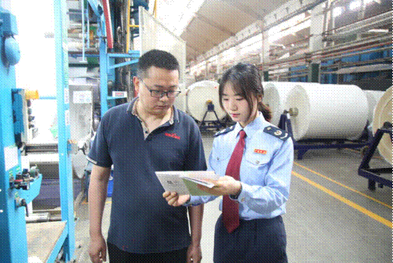 税务干部到意龙科纺宣讲税费优惠政策(摄影:张渝)