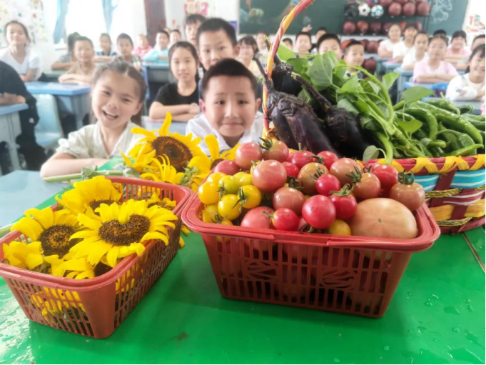 花已绽,瓜已熟。孩子们在老师的带领下,提着筐,拿着箩,纷纷奔赴农场,开启属于这个季节的收获征程。他们瞪大双眼对着枝叶花果瞧了又瞧,看了又看,一切的一切,于他们而言似乎都那般新奇。枝上的灯笼椒、紫袍茄子引得孩子们连连惊叹。如孩子们脸庞般的向日葵笑得直不起腰。孩子们在欢声笑语中摘下酸甜宜人的红番茄,抱起圆滚滚的大西瓜……