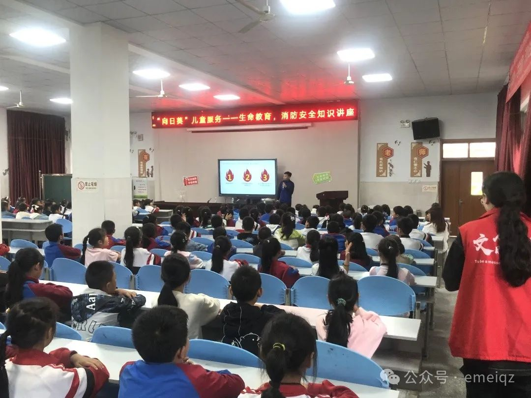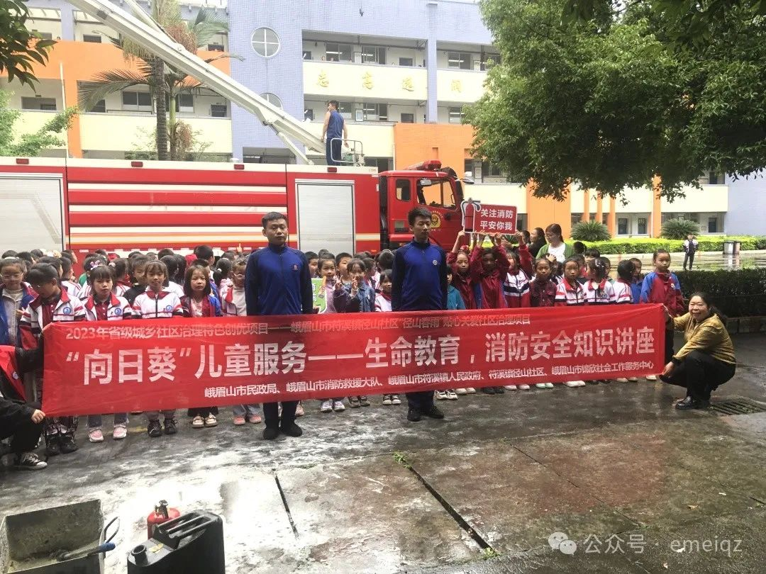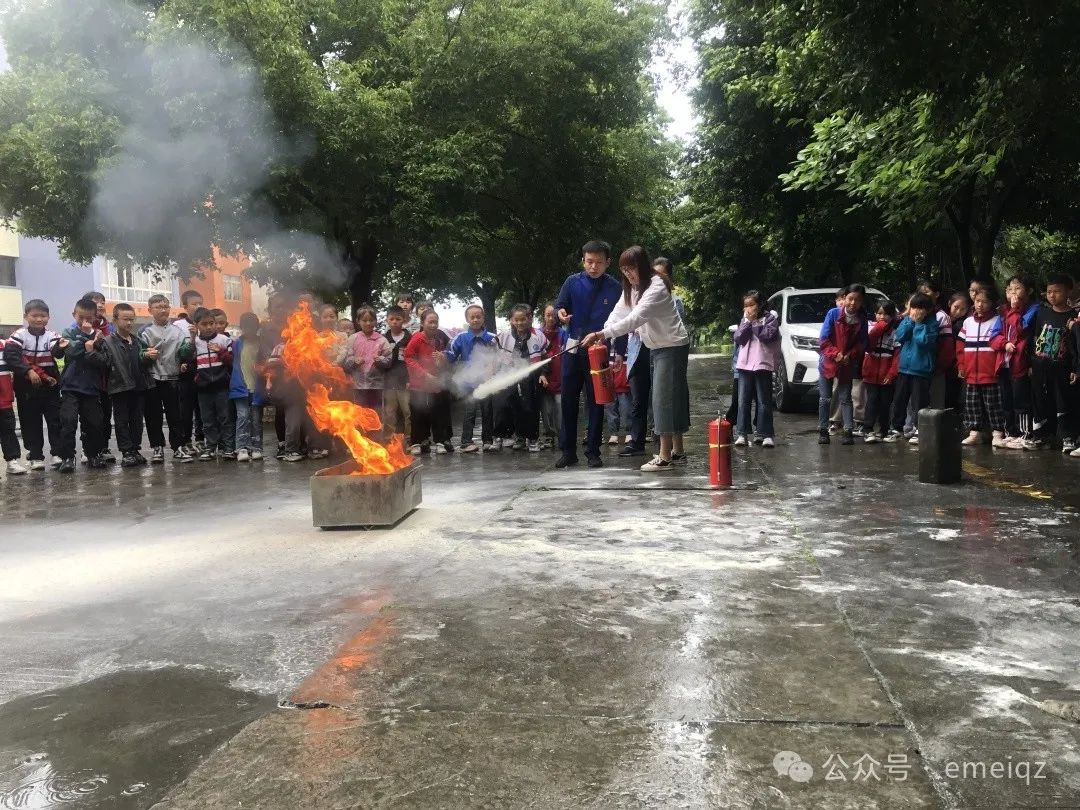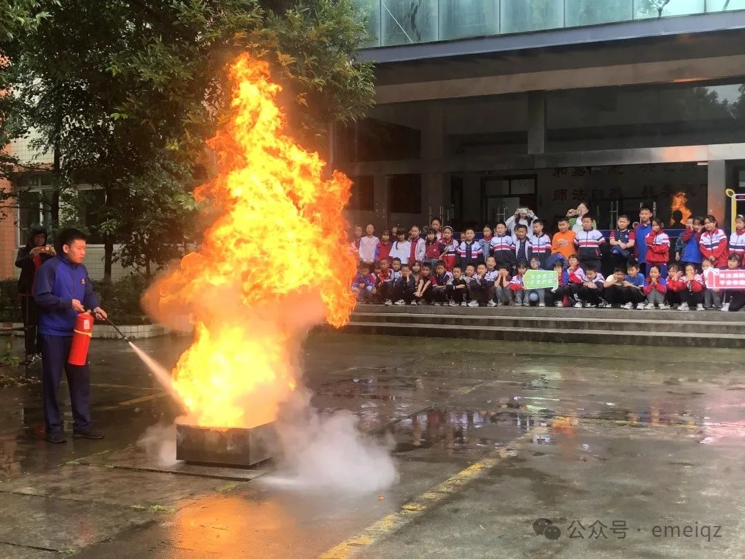 峨眉山市消防站的消防员叔叔结合具体事例生动地给同学们介绍了消防专业知识,并让师生亲身体验了灭火器的使用方法、感受了消防车喷水的过程。