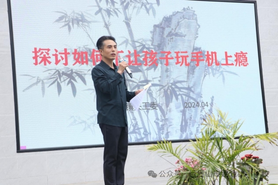 龙池镇关工委主任周世勇给全校家长朋友做“探讨如何不让孩子玩手机上瘾”的主题分享。明确指出当今手机对于孩子的利与弊,手机管理不当一定会影响孩子的学习成长。家长和老师都要落实手机管理的责任。