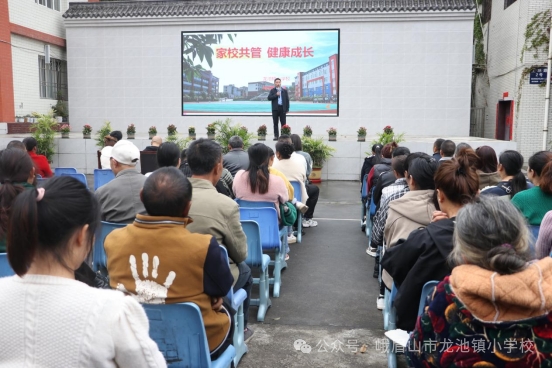 龙池镇小党支部书记校长徐煜做分享交流。徐校长向家长们分享了我校教学、运动、劳动所取得的不错成绩。并向家长提出希望和建议:1.学会尊重2.关注安全健康3.培养好习惯。也向家长介绍我校未来发展的计划,希望家校合作,培养全面发展的儿童。