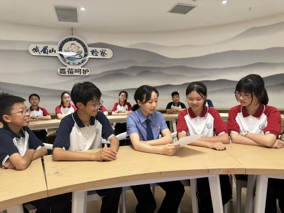 5月17日下午,峨眉一中七年级部分学生来到峨眉山博物馆普法“微基地”,峨眉山市检察院未检检察官助理李冰清给同学们上了一堂别开生面的“预防学生欺凌”的主题教育课。