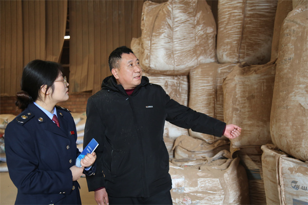 税务干部到四川省蜀汉鑫生物质燃料有限公司宣传税收优惠政策(摄影:张天奕)