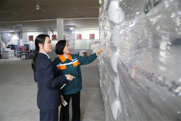 税务干部到峨眉山长庆新材料有限公司走访了解企业生产情况(摄影:雷娟)