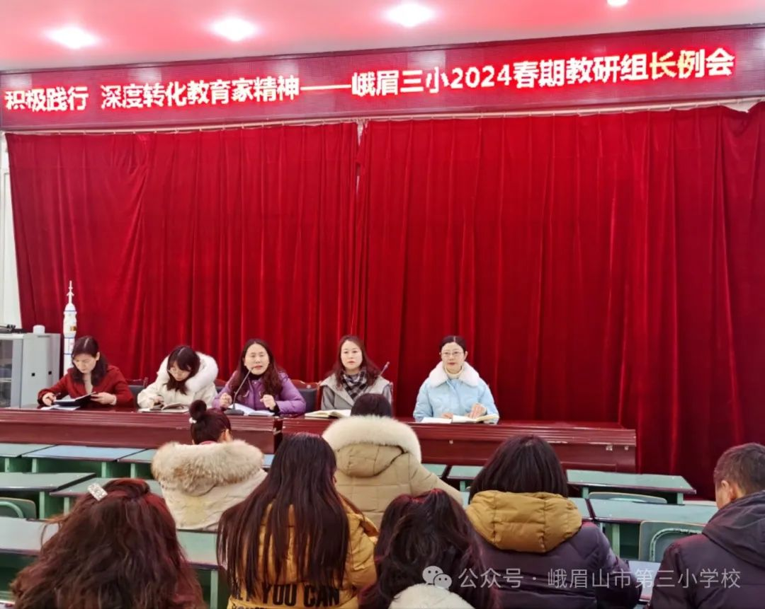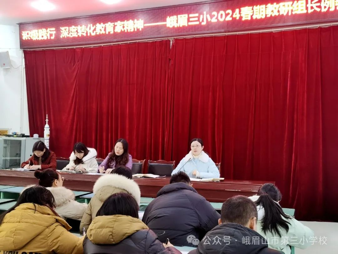 在草长莺飞的二月天,三小校园正处于欣欣然的样子。2月29日,伴随着春日的暖阳,峨眉三小召开了以“积极践行 深度转化教育家精神”为主题的教研组长工作例会。会议由副校长鲁春梅主持,全体年级组长和教研组长参加会议。