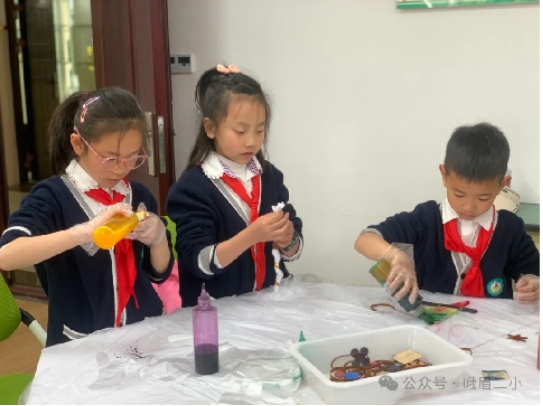 春光灿烂晴方好,成长踏春正当时。孩子们在活动中各种亲身的体验与学习交流,收获到许多实用的中草药药学知识和感受到扎染艺术的魅力。