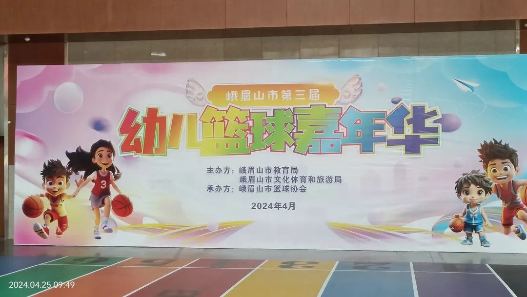 为进一步推动峨眉山市幼儿篮球的发展,提高幼儿身体素质,提升幼儿的团队精神和协作意识,2024年4月23日至26日,峨眉山市教育局与市文化体育和旅游局在峨眉篮协炫彩体育馆共同举办了峨眉山市第三届幼儿篮球嘉年华。该活动由峨眉山市篮球协会承办,峨眉山市黄宇学校体育工作室协办。