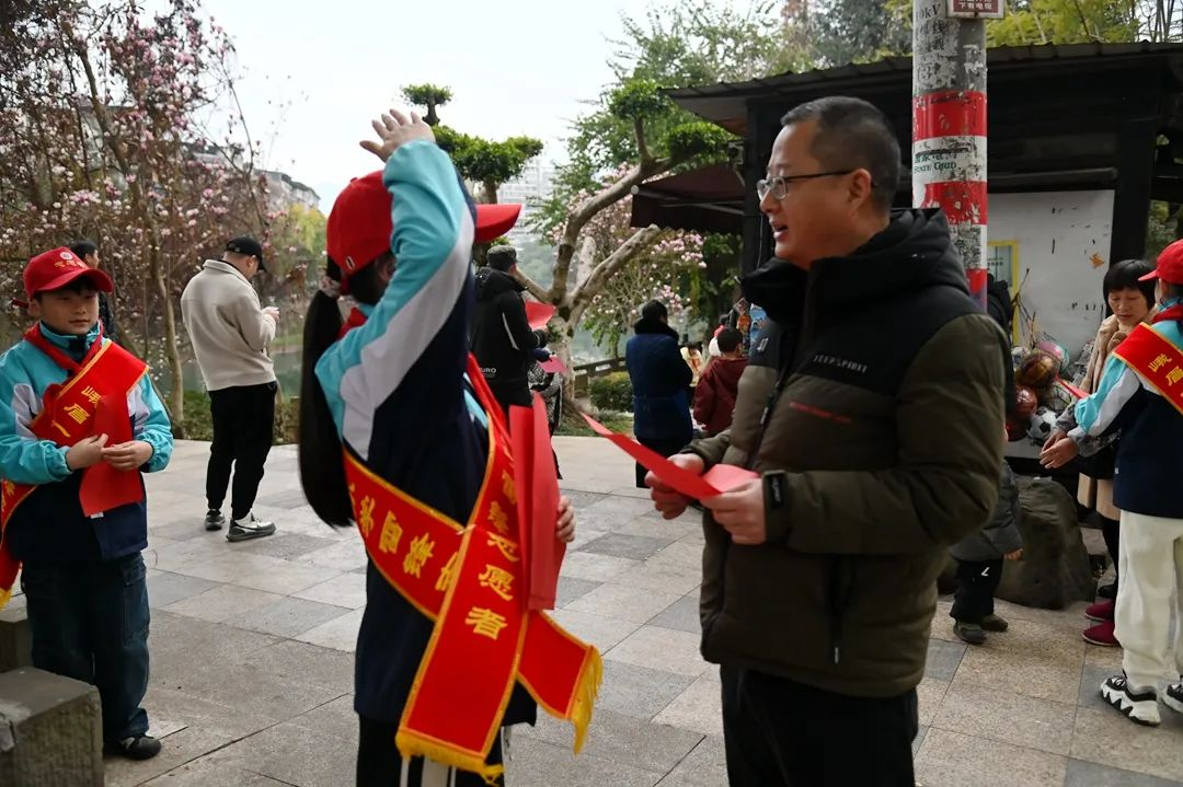 四年级7班的同学们则来到了峨眉河沿岸,开展了保护母亲河的志愿服务活动。他们沿河进行卫生打扫,清理河岸垃圾,并发放环保宣传单,倡导居民共同参与河流保护。这一活动不仅锻炼了同学们的实践能力,也增强了他们的环保意识。