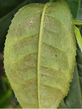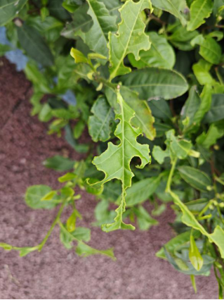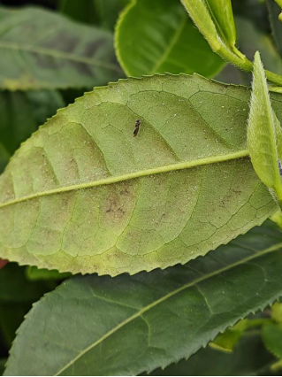 茶黄螨也称多食跗线螨,其幼螨和成螨会集中在茶叶幼嫩的叶片背面吸食汁液,造成叶片畸形、生长缓慢,严重时茶叶顶部干枯。受害叶片可能会出现变小、增厚、卷曲等症状,其颜色加重,背面变为黄褐色或灰色。茶黄螨的侵害会导致植株生长停滞,植株矮小,严重时可造成植株早衰。