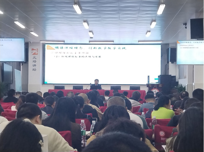胡强老师的专题讲座《践行课程标准理念,构建高效数学课堂》提出要创新数学教学实践、细化课时教学目标、重视单元整体设计、调动学生积极参与、发挥评价激励作用,他从理论到实践全面深刻地阐述了数学核心素养如何落地。