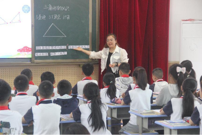 桂花桥镇小学的张鹰老师执教了《三角形的认识》。本节课张老师的教学紧紧围绕教学目标展开,层次清楚,环节紧凑,引领学生通过观察分析、动手实践、自主探究、合作交流等活动自主学习获取知识,密切关注学生学习研究的过程,巧妙利用旧知降低了新知识的难度,充分体现学为中心的理念。