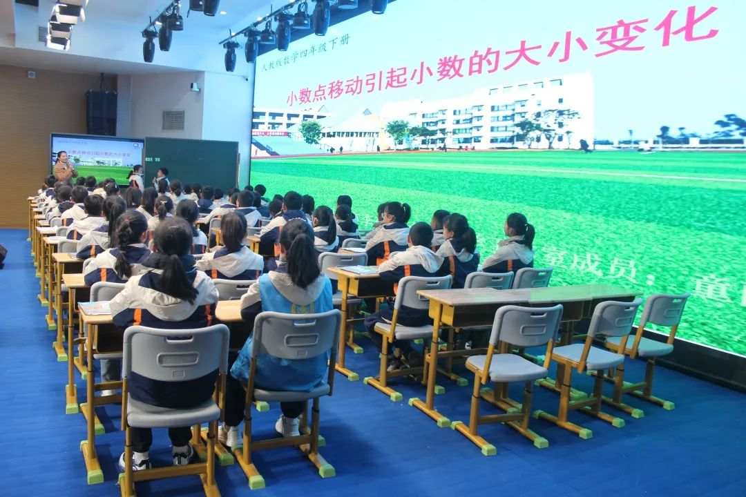 李建玲名师团队的童丽红老师做《小数点的移动引起小数大小的变化》课例展示。