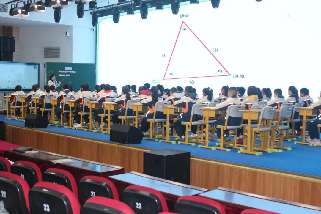 高新实小的乐山新生代教师董英展示课例《认识三角形》,董老师紧扣知识本质,以问题驱动突破教学难点,引导学生从生活实例中抽象几何概念,搭建新旧知识之间联系,强化数学思维与动手实践能力。