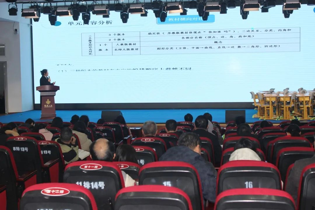 沙湾小学的乐山新生代教师刘学梅以《关联要素,构建图形认识的一致性》为主题,进行了专题讲座。阐释图形教学的系统性建构方法,倡导以结构化思维提升学生空间观念。