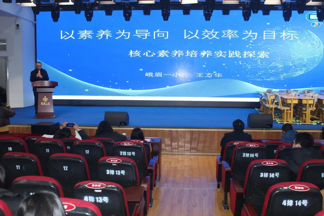 峨眉一小的王方华老师结合自己的一线教学经验进行了主题为《以素养为导向,以效率为目标,数学学科核心素养培养的实践探索》的专项培训。