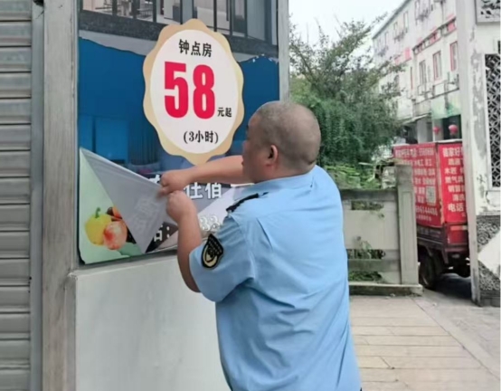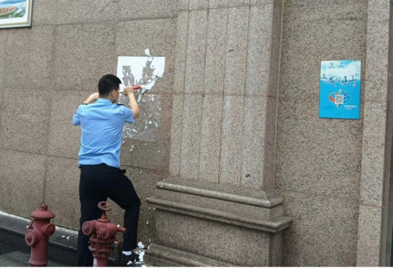 清理过程中,执法人员依法履职、积极作为,根据不同情况采取相应措施:易撕的用手清除,难撕的用铲子等工具细心刮铲,尽力恢复建筑物原貌。同时,他们还主动走进临街商铺,以“拉家常”方式宣传市容政策,呼吁商户共同监督、主动举报非法张贴行为,获得不少商户积极响应。大家承诺将配合日常维护,杜绝随意张贴。