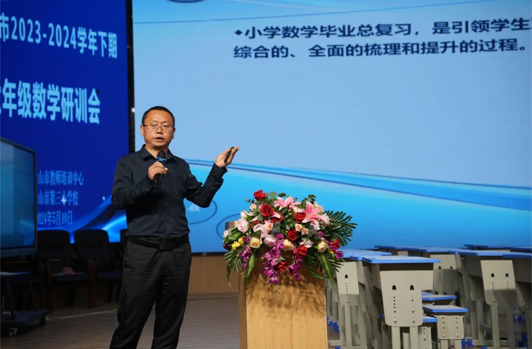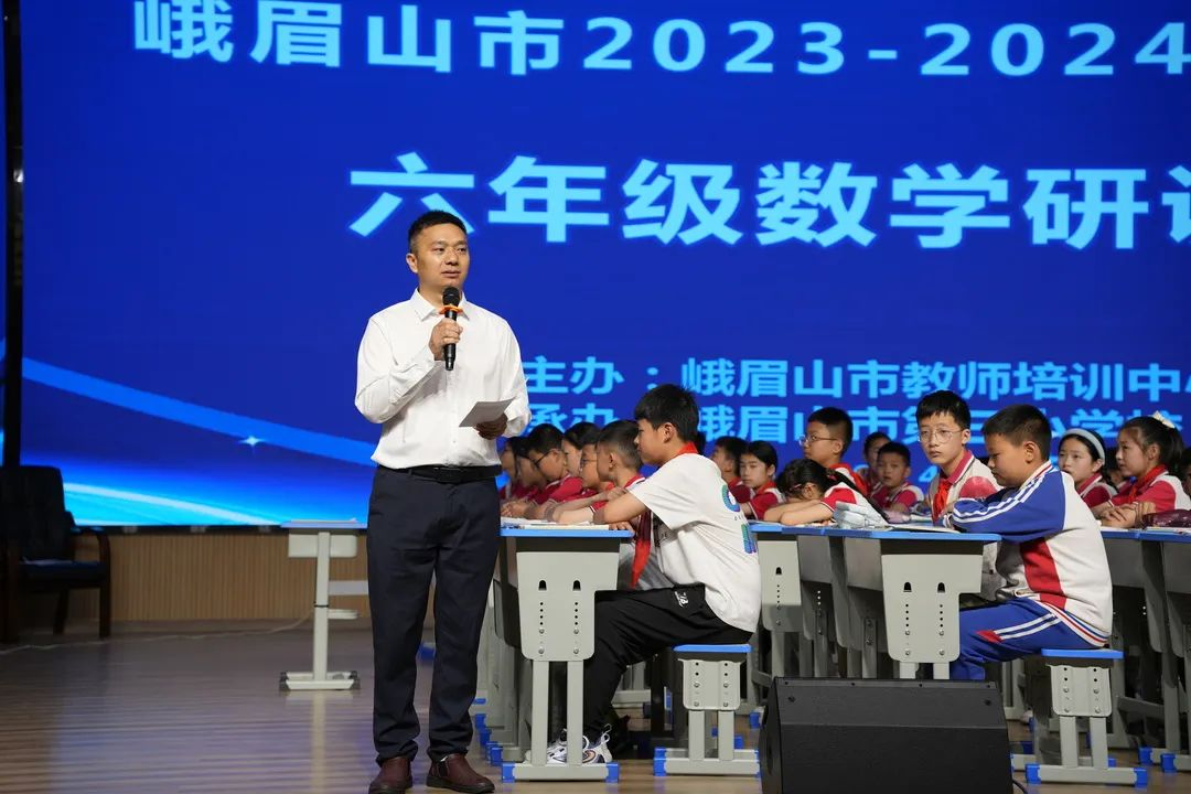 为全面落实“双减”,促进教师研读新课标,践行新课堂,通过深入有效的复习促进学业质量的全面提升。2024年5月10日,峨眉山市六年级数学复习教学专题研训会在峨眉三小如期举行,全市各学校六年级数学教师、分管领导约80人参加了此次活动。活动由峨眉三小张建军老师主持。