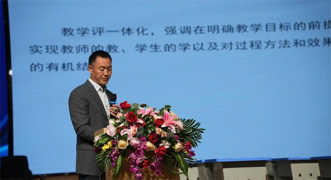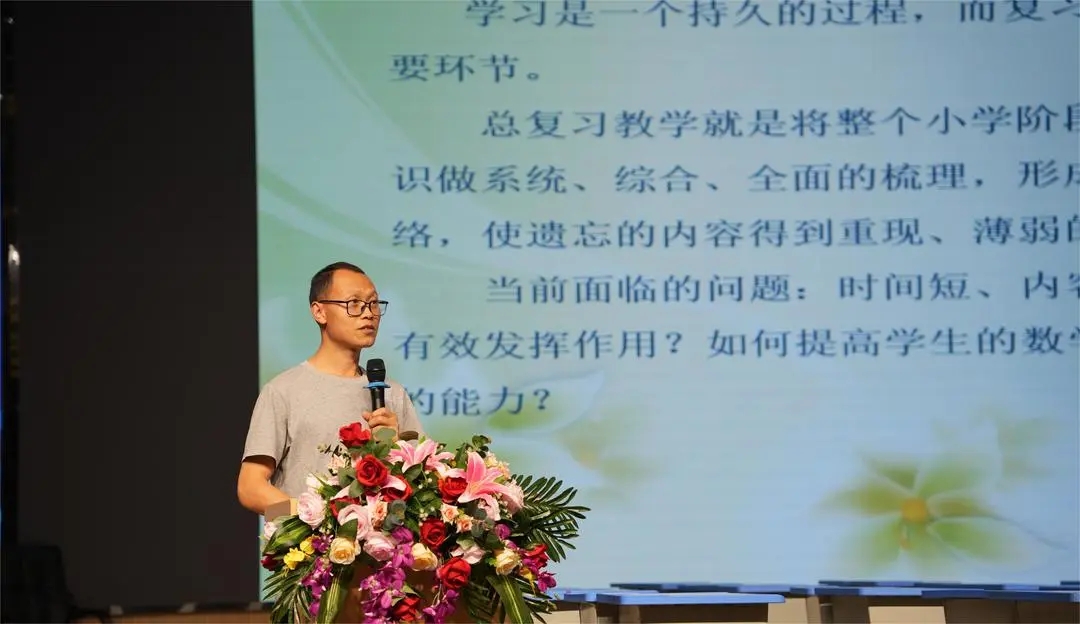 峨眉山市师训中心小学数学教研员、小教室主任徐国明老师作了《设计“评学教一体化”学习任务,提升复习效能》的专题引领,基于对数学新课标学业质量标准、考试评价要求的解读、深入分析了近两年乐山市六年级数学学业质量监测工具,提出了注重目标导向、强化内容整合、重视评价反馈等复习教学建议,强调了复习教学的相关注意事项。