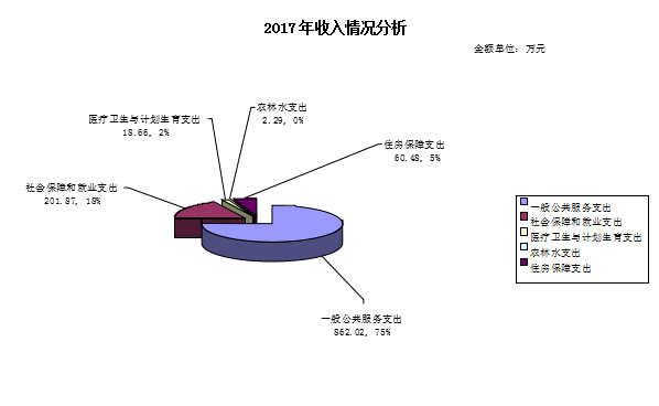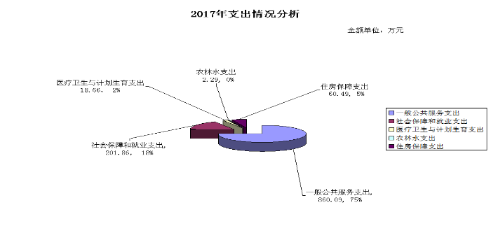 人大办2017年一般公共预算财政拨款支出1143.39万元,主要用于以下方面:一般公共服务支出860.09万元,占75%;社会保障和就业支出201.86万元,占18%;医疗卫生支出18.66万元,占2%;住房保障支出60.49万元,占5%;农林水支出2.29万元,占0%。(饼状图)