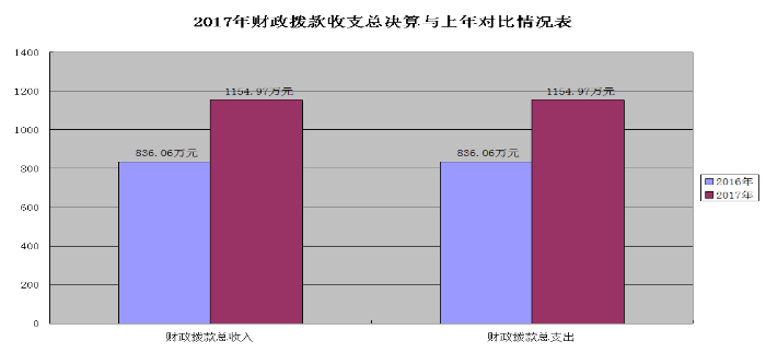 人大办2017年度财政拨款收支总决算1154.97万元。与2016年相比,财政拨款收、支总计各增加318.91万元,增长38.14%,增长原因为2017年单位在职人员增加。(柱状图)