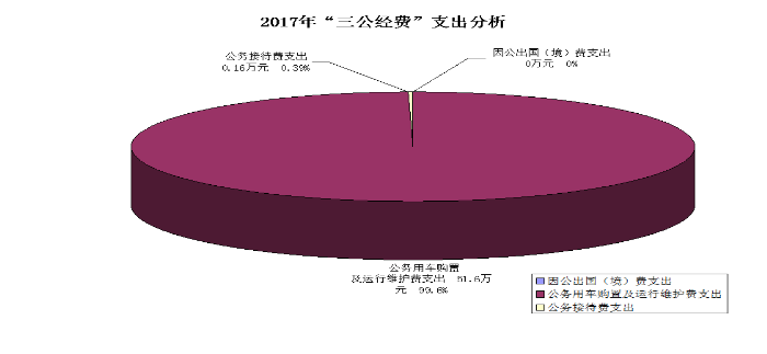 2017年度“三公”经费财政拨款支出决算中,因公出国(境)费支出决算0万元,占0%;公务用车购置及运行维护费支出决算51.60万元,占99.69%;公务接待费支出决算0.16万元,占0.31%。具体情况如下: