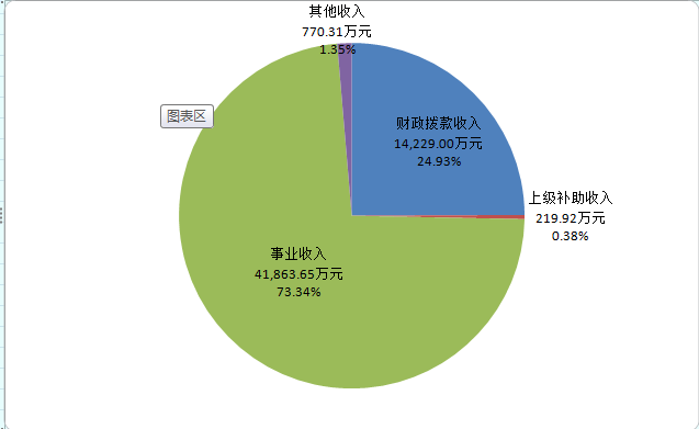 2017年峨眉山市卫生和计划生育部门本年收入合计57082.88万元,其中:财政拨款收入14229.00万元,占24.93%;事业收入41863.65万元,占73.34%;上级补助收入319.92万元,占0.38%;其他收入770.30万元,占1.35%。