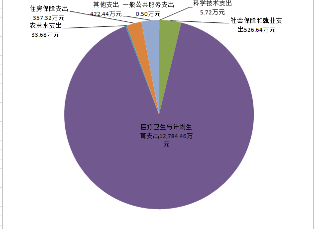 峨眉山市卫生和计划生育部门2017年一般公共预算财政拨款支出14130.76万元,主要用于以下方面:一般公共服务支出0.50万元,占0.00%;科学技术支出5.72万元,占0.04%;社会保障和就业支出526.64万元,占3.73%;医疗卫生支出12784.46万元,占90.47%;农林水支出33.68万元,占0.24%;住房保障支出357.32万元,占2.53%;其他支出422.44万元,占2.99%。