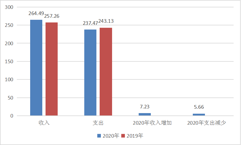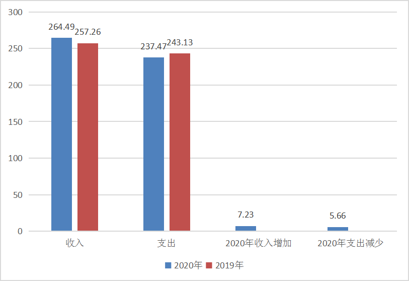 2020年度收、支总计501.96万元。与2019年相比,收、支总计增加1.56万元,增长0.3%。