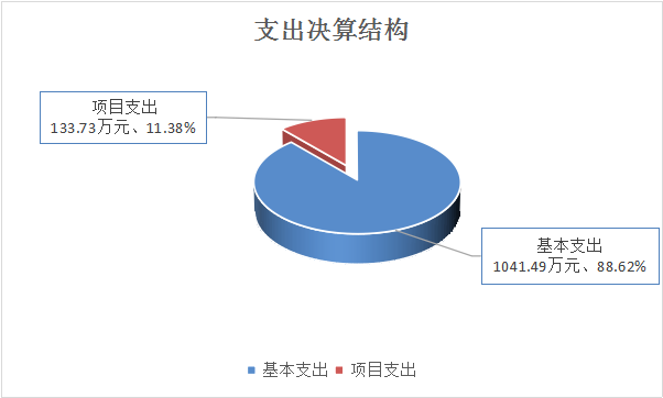 2020年本年支出合计1175.22万元,其中:基本支出1041.49万元,占88.62%;项目支出133.73万元,占11.38%;上缴上级支出0万元,占0%;经营支出0万元,占0%;对附属单位补助支出0万元,占0%。(图3:支出决算结构图)