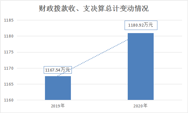 2020年财政拨款收、支总计1180.92万元。与2019年相比,财政拨款收、支总计各增加13.38万元,增长1.15%。主要变动原因是在职人员增加。