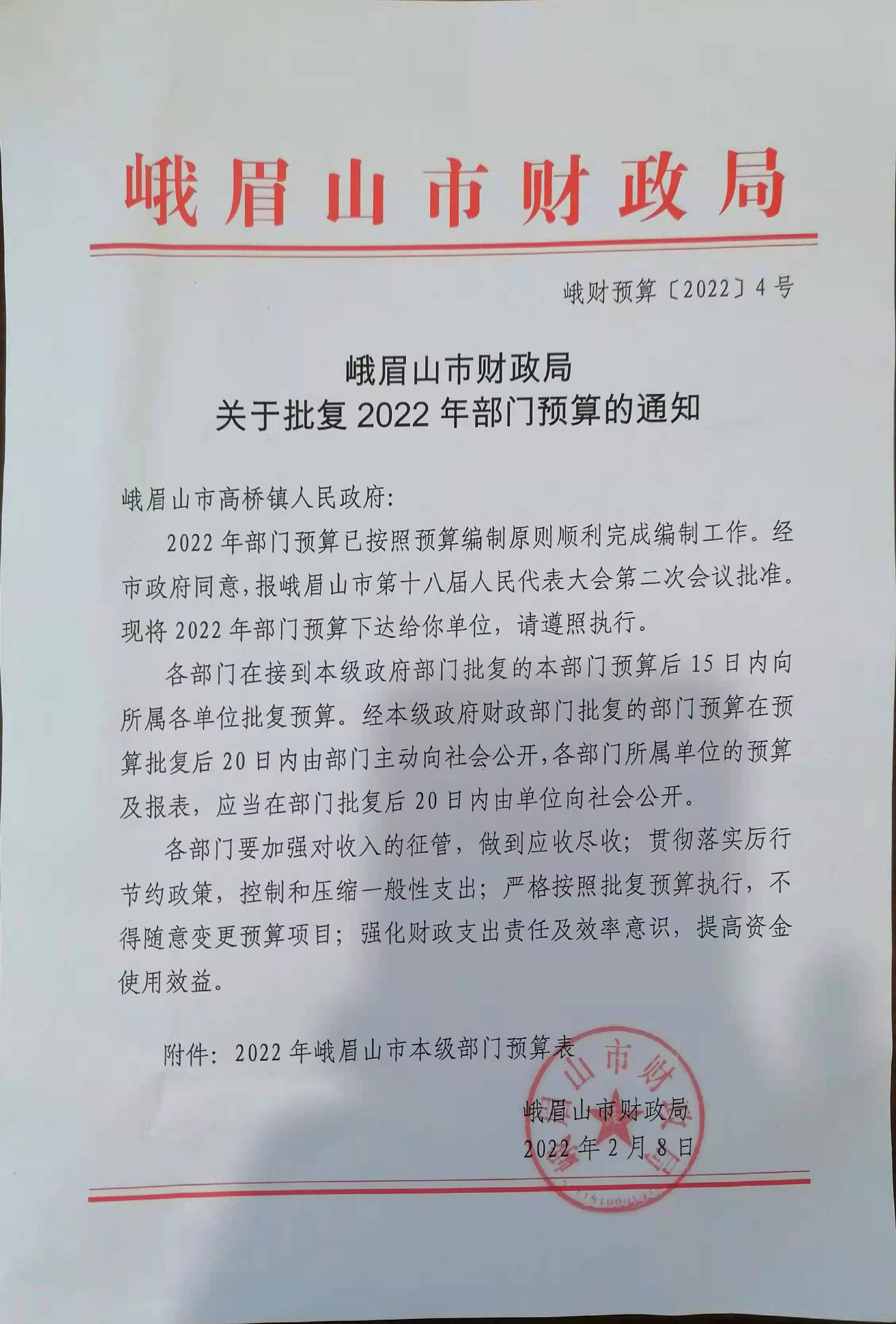 关于峨眉山市高桥镇人民政府2022年部门预算编制的说明