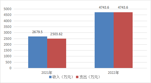 2022年度收入总计4743.6万元,与2021年相比增加2064.1万元,增幅77.03%;支出总计4743.6万元,与2021年相比增加2239.98万元,增幅89.47%,主要变动原因是安排农村农业综合发展示范园建设项目资金2000万元。