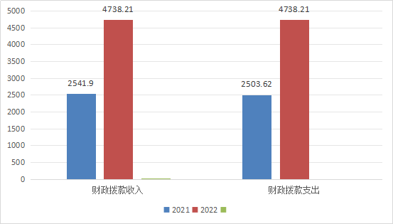 2022年度财政拨款收入总计4738.21万元,与2021年相比增加2196.31万元,增幅86.48%;2022年度财政拨款支出总计4738.21万元,与2021年相比增加2234.59万元,增幅89.25%,主要变动原因是安排了农村农业综合发展示范园建设项目资金2000万元。