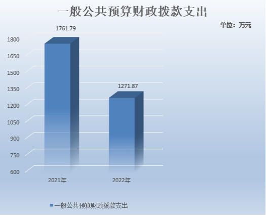 2022年一般公共预算财政拨款支出1271.87万元,占本年支出合计的99.62%。与2021年相比,一般公共预算财政拨款支出减少489.92万元,下降27.81%。主要变动原因是项目经费减少、厉行节约。