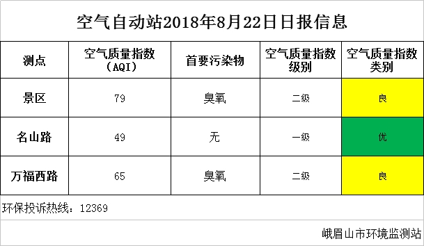 【市环保局】空气自动站2018年8月22日日报信息