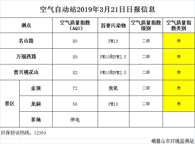 【市环保局】空气自动站2019年3月21日日报信息
