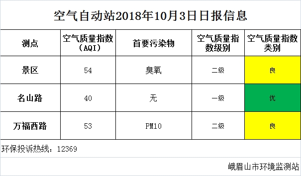【市环保局】空气自动站2018年10月3日日报信息
