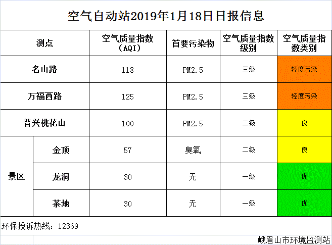 【市环保局】空气自动站2019年1月18日日报信息