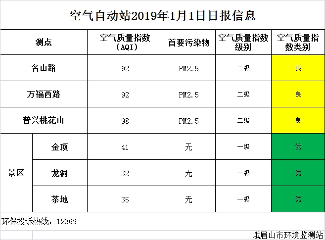 【市环保局】空气自动站2019年1月1日日报信息