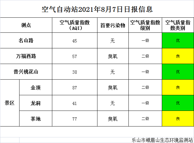 峨眉山市空气质量日报模式(7.10-8.7)(1)(1).xlsx