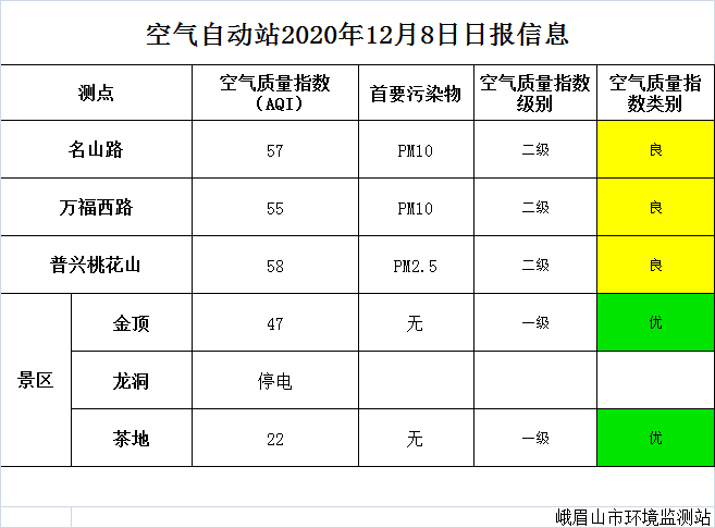 【峨眉山生态环境局】空气自动站2020年12月8日日报